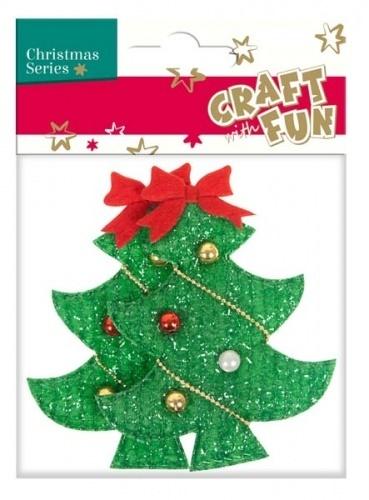 Opakowanie zawiera 2 sztuki aplikacji materiałowych w kształcie choinki.