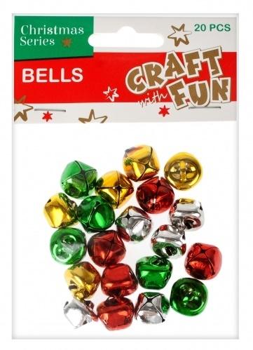 Opakowanie zawiera 20sztuk metalowych dzwoneczków w różnych kolorach.