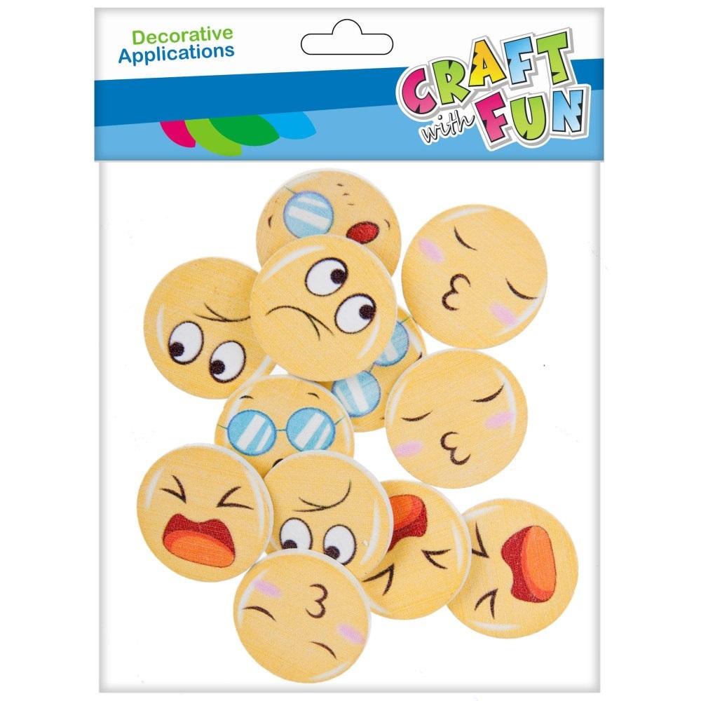 Idealne do zdobienia kartek okolicznościowych, świetnie sprawdzą się również jako element dekoracyjny do pokoju dziecka czy dodatki do prezentów. Opakowanie zawiera 12 sztuk kolorowych drewnianych emotek.