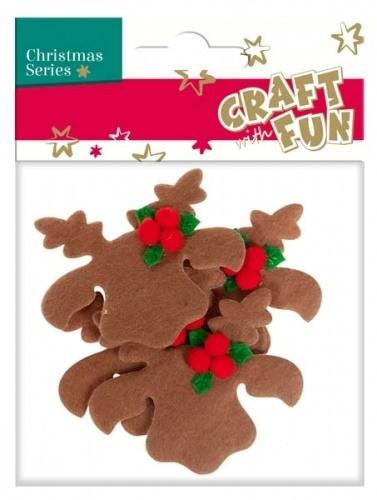 Opakowanie zawiera 4 sztuki aplikacji filcowych w kształcie renifera.