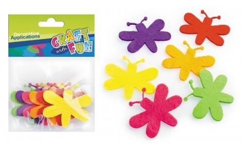 Zestaw 6 filcowych aplikacji w kształcie motyli. Artykuł dla hobbystów, artystów i entuzjastów rękodzieła. Nieodpowiednie dla dzieci w wieku poniżej 3 lat.