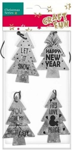 Opakowanie zawiera 4sztuki zwieszek metalowych w kształcie choinki.