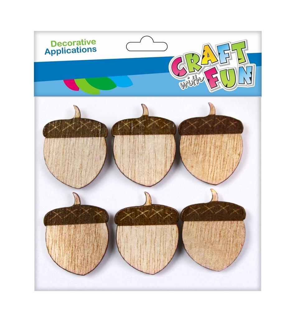 Opakowanie zawiera: 6 sztuk kolorowych drewnianych Żołędzi. Przy pomocy tego zestawu możesz zaprojektować własne ozdoby. Używaj tych produktów w połączeniu z innymi akcesoriami z serii Craft With Fun lub z innymi kompletami z serii. Wszystkie elementy wykonane z drewna.