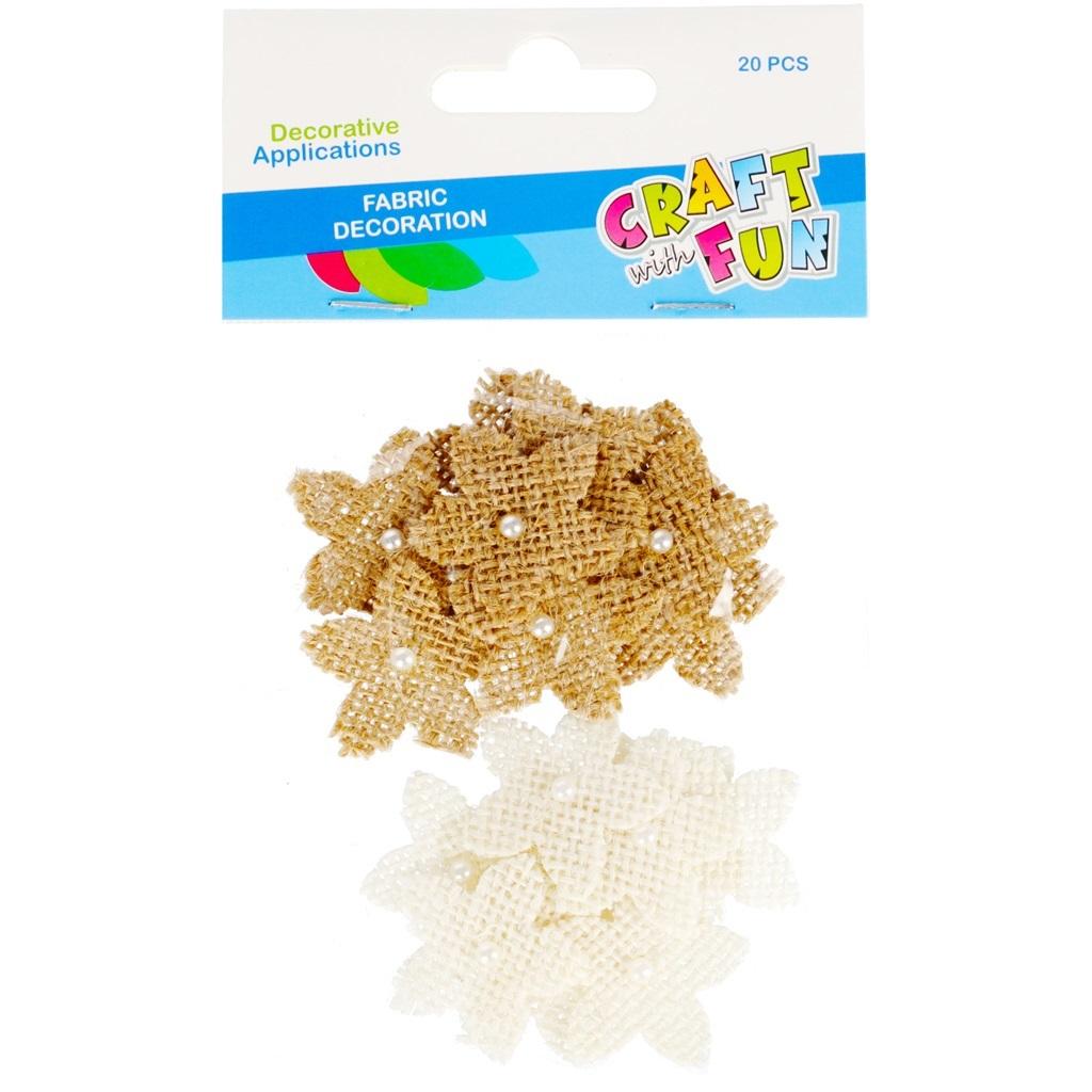 Ozdoba kwiatuszek tkanina naturalny/biel 20szt