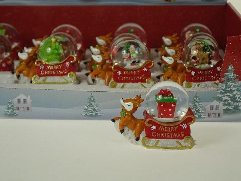ozdoba świąteczna - kula śniegowa z reniferem 8,5x6,5cm, display 12szt; Box