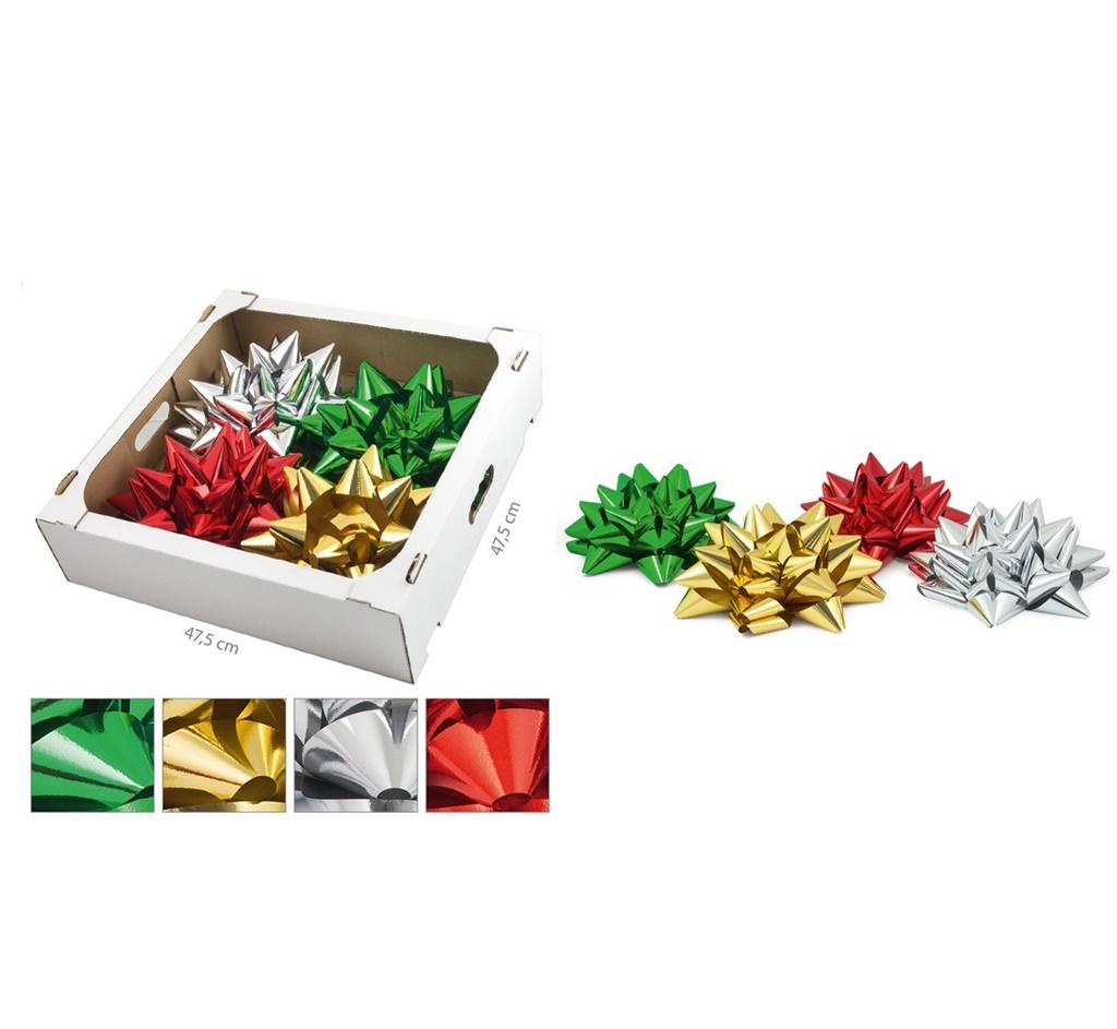 Ozdobna Kokarda Gwiazda Metaliczna Błyszcząca Mix kolor, box 4