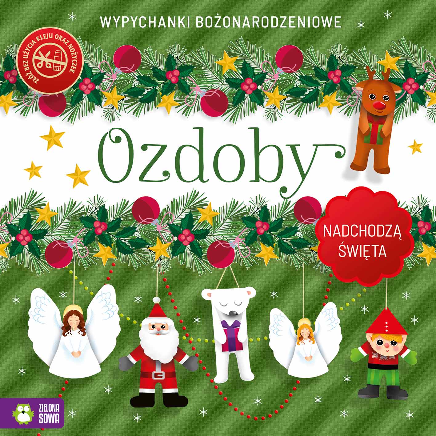 "Nadchodzą Święta" to seria książek aktywnościowych, dzięki której dziecko samodzielnie wykona bożonarodzeniową szopkę, ozdoby czy bombki na choinkę. Wszystkie dekoracje można przygotować bez użycia kleju i nożyczek, co gwarantuje bezpieczną zabawę.
