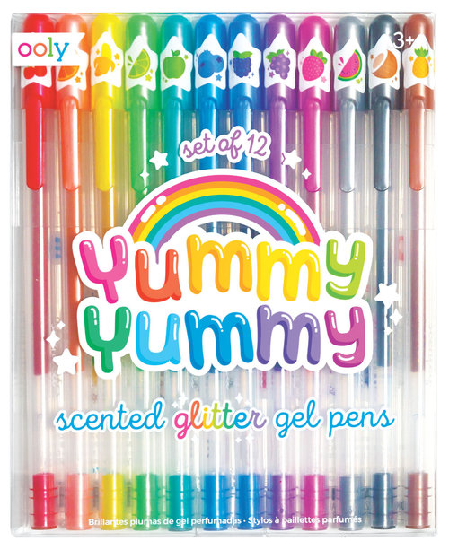 PACHNĄCE DŁUGOPISY ŻELOWE Z BROKATEM YUMMY YUMMY 2.0 - Ten sam świetny długopis z zupełnie nowym wyglądem, teraz dostępny w dwóch różnych opakowaniach! - 12 różnych zapachów i kolorów - Tusze z brokatem - Tusze bezkwasowe - Końcówka 1.0 mm