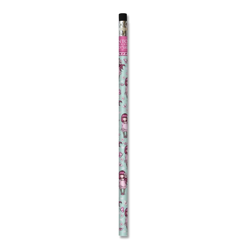 Cherry Blossom - to seria ze szkolnej kolekcji Sparkle & Bloom, utrzymana w odcieniach turkusu, z wizerunkiem dziewczynki Gorjuss otoczonej różowymi motylami i kwiatami, wzbogacona mgiełką brokatu.Pachnący, drewniany ołówek z gumką.Ozdobiony wizerunkiem dziewczynki Gorjuss.Każdy egzemplarz z logiem Santoro.Wymiary: 16,7 cm x 0,7 cm x 0,7 cm.