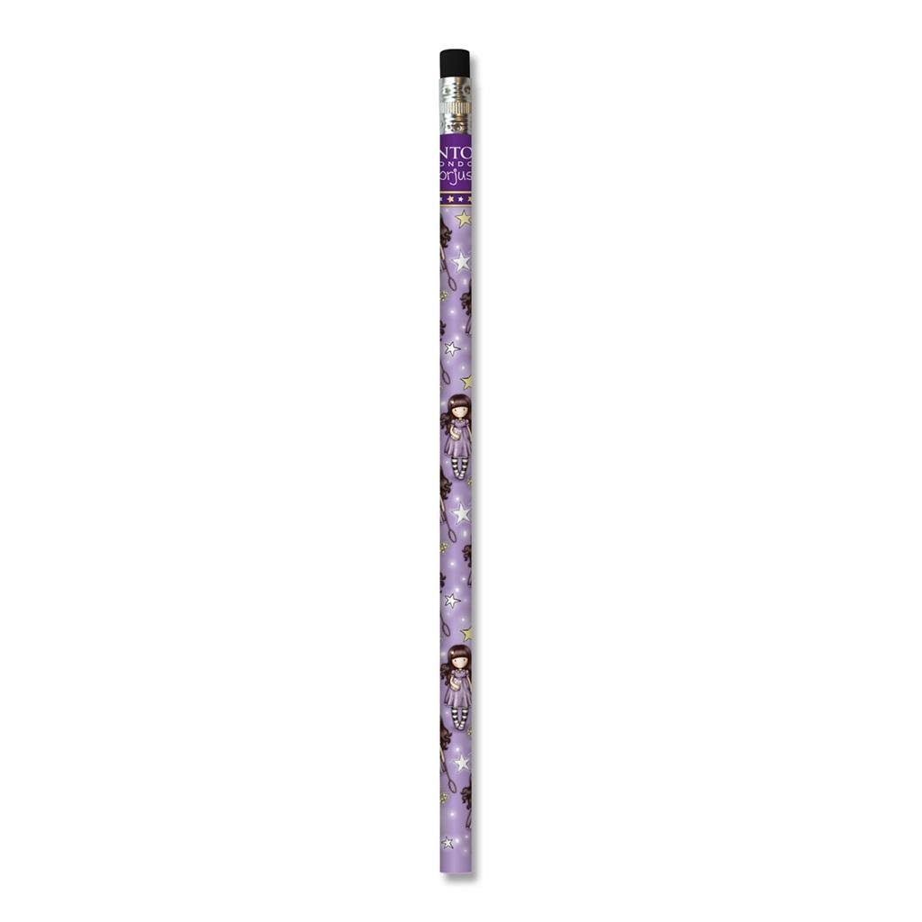 Catch a Falling Star to seria ze szkolnej kolekcji Sparkle & Bloom, wzbogacona mgiełką brokatu, utrzymana w odcieniach fioletu, z wizerunkiem dziewczynki Gorjuss na tle gwieździstego nieba łapiącej spadające gwiazdy.Pachnący, drewniany ołówek z gumką.Ozdobiony wizerunkiem dziewczynki Gorjuss.Każdy egzemplarz z logiem Santoro.Wymiary: 16,7 cm x 0,7 cm x 0,7 cm.