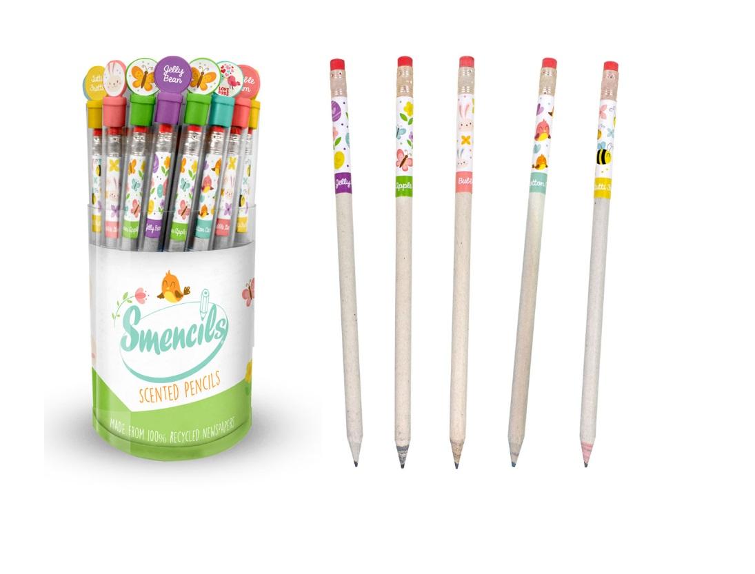 Smencils to jedyne na rynku pachnące ołówki 100% ekologiczne. Smencils to najsmaczniej pachnące ołówki jakimi kiedykolwiek będziesz mieć okazję pisać i rysować. Ołówki wykonane są w 100% z przetworzonych gazet, wszystkie składniki ołówka i jego opakowania pochodzą z recyklingu lub są przyjazne dla środowiska. Materiał z którego ołówki zostały zrobione, jest tak utwardzony, że są one tak samo wytrzymałe i można je tak samo temperować jak te drewniane. Każdy ołówek zapakowany jest w tubę z zabawnym znaczkiem zapachu, aby ołówek który dostaniesz do ręki pachniał tak samo jak wtedy gdy został nasączony najwyższej jakości ekologicznymi olejkami. Ołówki Smencils wystepują w różnych zapachach, między innymi: guma balonowa, galaretka, wata cukrowa, owocowy, kwaśne jabłko.