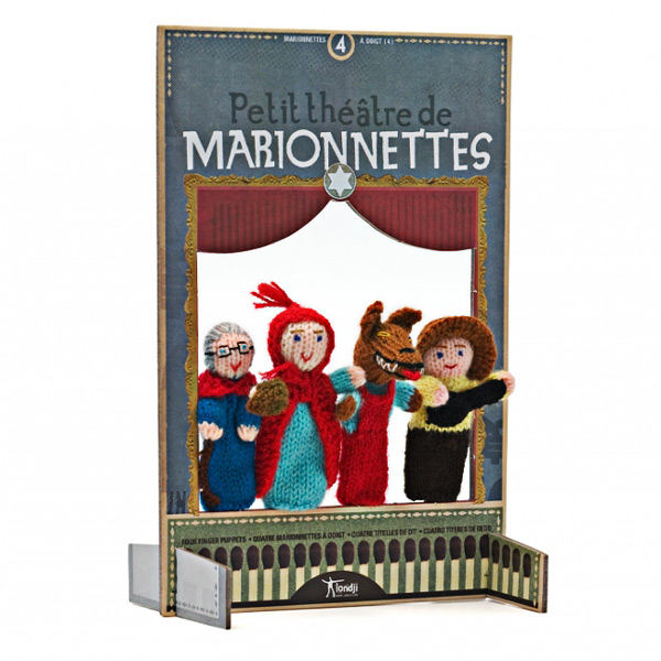 W mini zestawie marki Londji® znajduje się tekturowy teatrzyk oraz 4 sztuki wełnianych kukiełek na palce. Materiał  nie powoduje alergii, nie rozciąga się, pacynki świetnie trzymają się na palcach.