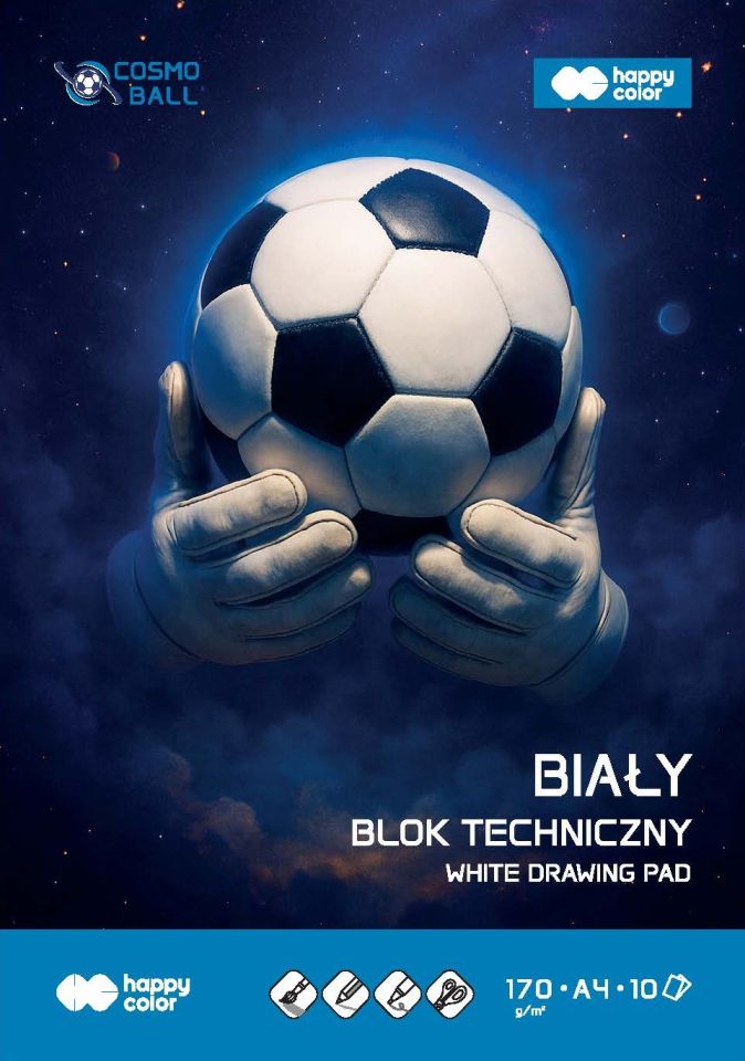 Paczka Blok techniczny biały Cosmo Ball A4 170g.10 ark.Happy Color 5 sztuk