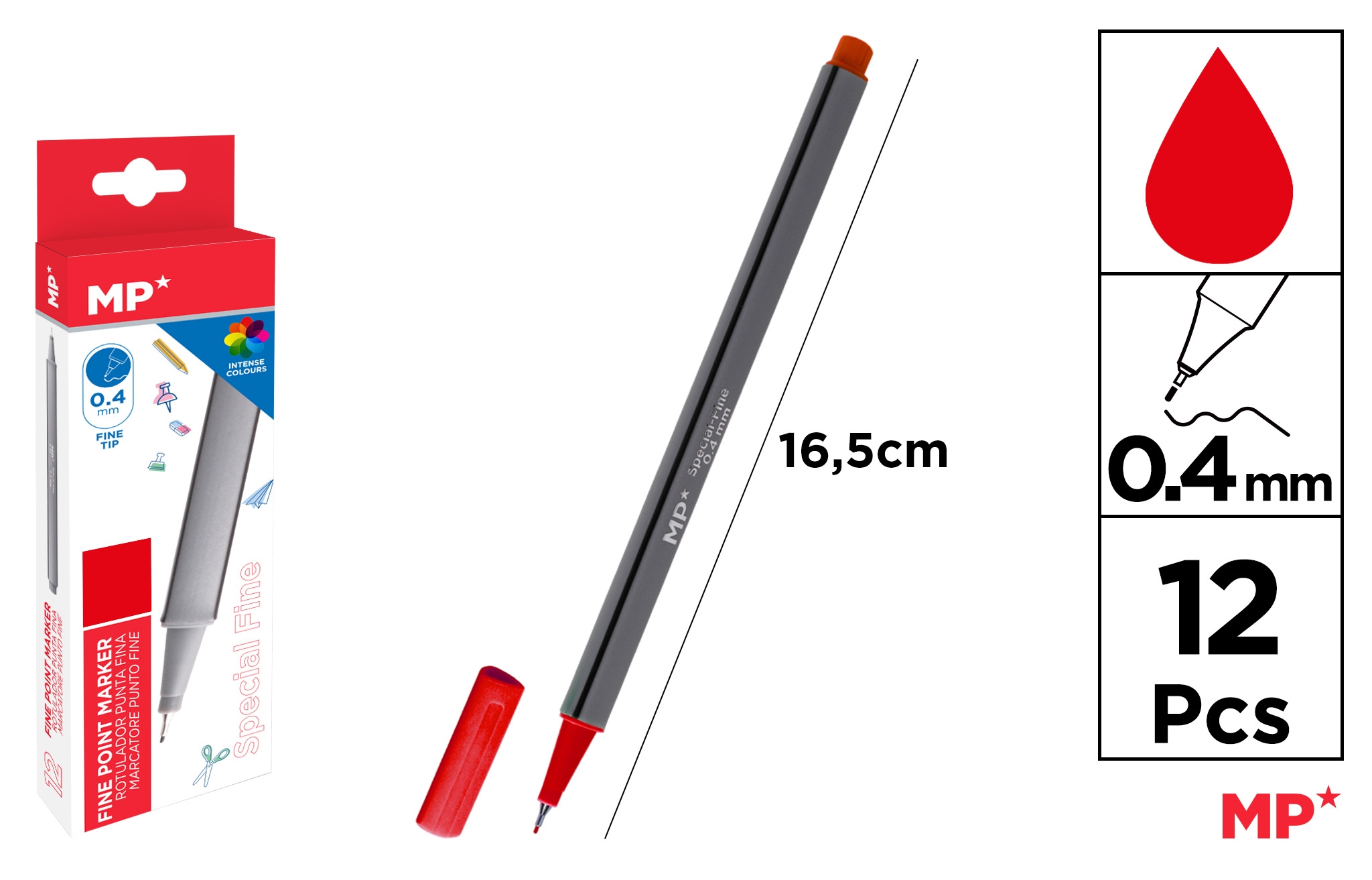 Paczka Cienkopis MP 0.4mm czerwony 12 sztuk