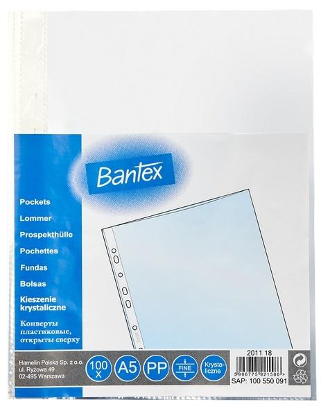 Paczka koszulki krystaliczne A5 Bantex PP 45 mikr. 100 sztuk