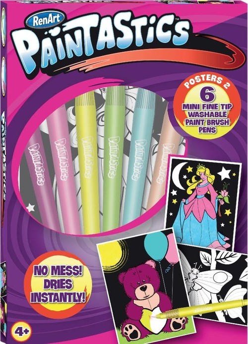 Malowanie pędzelkiem w flamastrze - zabawa bez plam i zabrudzeń. Zestaw zawiera: - 6x mini Paintastics - 6x plakaty A5 - instrukcję