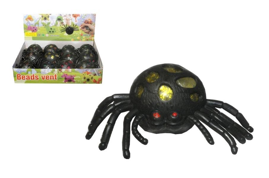 Gumowy pająk gniotek z otworami. Wewnątrz zwierzęcia jest forma przypominająca jajo, która jak zgniecie się pająka wydostaje się na różne strony. Podane wymiary są wymiarami jednej zabawki. Produkt występuje w kilku wersjach kolorystycznych, wybierany losowo. Cena dotyczy jednej sztuki.