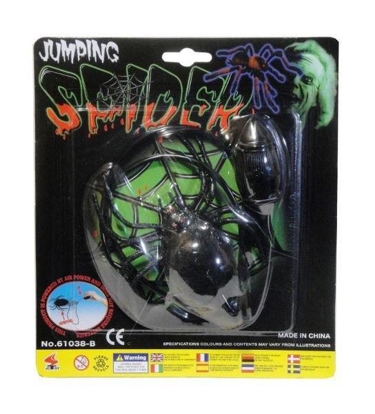 Ponadczasowa zabawka dla dzieci. Po naciśnięciu na pompkę pająk zaczyna skakać. Produkt zapakowany w kartonową podstawkę z przezroczystym kloszem. Podane wymiary są wymiarami opakowania.
