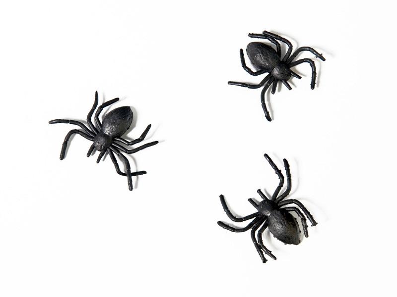 Pająki plastikowe w kolorze czarnym, wymiary 3x3 centymetry.(1 op. / 10 szt.)
