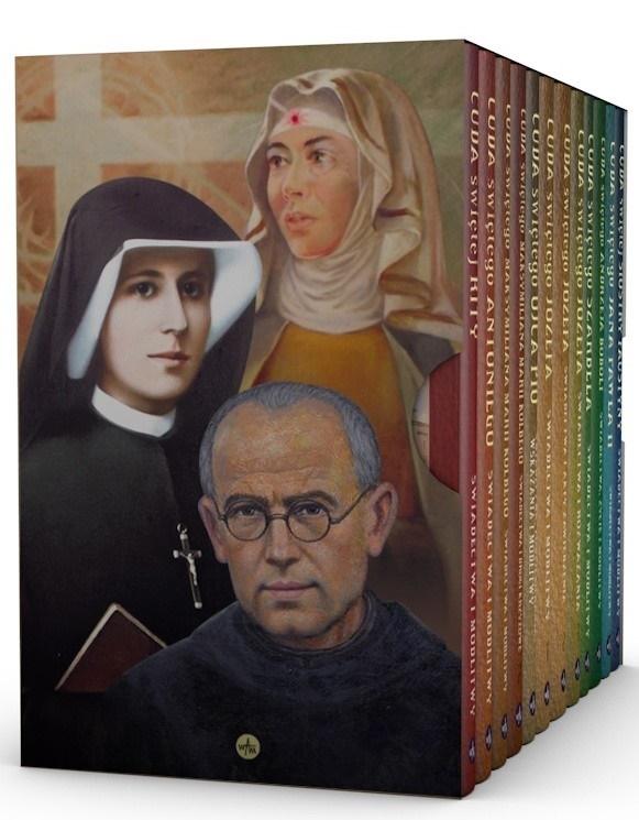 12 książek zebranych w tym specjalnym komplecie pozwoli nam lepiej poznać najbardziej znanych świętych: Józefa, Antoniego, Ritę, Jana Pawła II, Faustynę, Ojca Pio, Maksymiliana Kolbego, Szarbela oraz Andrzeja Bobolę. Każdy tom zawiera przystępnie napisaną biografię, pełne wdzięczności świadectwa za skuteczne orędownictwo oraz modlitwy za wstawiennictwem danego patrona lub patronki.