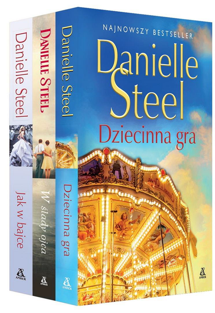 Pakiet zawiera 3 książki DZIECINNA GRA Lekcje, jakich uczą nas dzieci, są najtrudniejsze. Co robimy, gdy nasze dzieci chcą iść swoją własną drogą? Kate Morgan, starszy partner w prestiżowej kancelarii prawnej w Nowym Jorku, jest dumną matką trojga dorosłych dzieci. Tamara, Anthony i Claire ukończyli świetne szkoły, wybrali wspaniałe ścieżki kariery i byliby chlubą ich ojca. Po śmierci męża Kate przez lata samotnie stara się trzymać w garści życie rodzinne, swoją karierę, a nawet emocje, ani razu nie zadając sobie pytania, czy naprawdę zna swoje dzieci… ani czy nadzieje, jakie w nich pokłada, są odpowiednie i pokrywają się z tym, czego pragną one same. Niebawem ma się o tym przekonać – podczas szalonego lata, kiedy świat Kare wywróci się do góry nogami… W ŚLADY OJCA Rok 1945. Amerykanie wyzwalają niemiecki obóz koncentracyjny. Wśród ocalonych są Jakob i Emmanuelle. Każde z nich straciło w koszmarze wojny wszystko i wszystkich. W sobie znajdują pocieszenie i nadzieję. W Nowym Jorku rozpoczynają nowe życie. Razem budują swój świat: ciężkiej pracy, dobrobytu, a wreszcie fortuny – dla siebie i swojego syna Maksa. Dwadzieścia lat później Max jest błyskotliwym biznesmenem, uosobieniem wiary, że Ameryka to kraj nieograniczonych możliwości. Pragnie zostawić za sobą smutek, jaki przeszłość rzucała cieniem na jego rodzinę, i osiągnąć własny sukces, tak jak jego ojciec. Lecz życie pokaże mu, że nie wszystko da się zaplanować. Max będzie musiał zrobić coś, czego nie robił nigdy wcześniej: walczyć, wytrwać i nauczyć się, co to naprawdę znaczy iść w ślady ojca... JAK W BAJCE Camille dorastała w Napa Valley, w wielkim domu, który jej ojciec zbudował na wzór rodzinnego zamku w Bordeaux. Miała idealne dzieciństwo, wypełnione luksusem i miłością rodziców. Po studiach wraca pomóc im prowadzić winnicę. Lecz bajka kończy się wraz z nagłą śmiercią matki... Sześć miesięcy po stracie żony zrozpaczony ojciec staje się łatwą zdobyczą dla tajemniczej, czarującej Francuzki. Camille jest zaszokowana jego decyzją o ponownym ślubie. Tylko ona dostrzega mroczną prawdę ukrytą za modnymi strojami i eleganckimi manierami macochy, z którą przyjdzie jej walczyć najpierw o swoje dziedzictwo, a potem o życie... DANIELLE STEEL – mistrzyni literatury obyczajowej – osiągnęła oszałamiający sukces wśród czytelniczek w każdym wieku, dzięki temu, że każda kobieta może odnaleźć w jej bohaterkach siebie, własne problemy i zmagania, ale zawsze nadzieję, wytchnienie, marzenie i refleksję. I wiarę, że dobro zwycięża. Pasją Danielle Steel jest pisanie, radością – dzieci, a hobby – zwierzęta. Jej 170 książek wydano w 69 krajach w rekordowym nakładzie 800 milionów egzemplarzy. Ponad 20 z nich sfilmowano.
