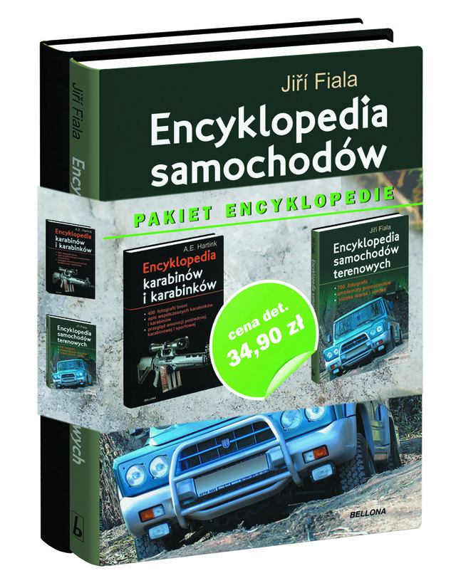 Encyklopedia samochodów...przedstawia czytelnikom świat pojazdów produkowanych w Europie i Azji. Zawiera dane techniczne samochodów,poczynając od wojskowych pojazdów z połowy XX wieku, a kończąc na współczesnych, unikatowych modelach używanych głównie do celów prywatnych i rekreacyjnych.Encyklopedia karabinów... jest ilustrowanym katalogiem współczesnych, najbardziej popularnych na świecie karabinków i karabinów, zwłaszcza sportowych. Przedstawia równieżhistorięrozwoju broni strzeleckiej, opis najważniejszych jej elementówi technologię produkcji.