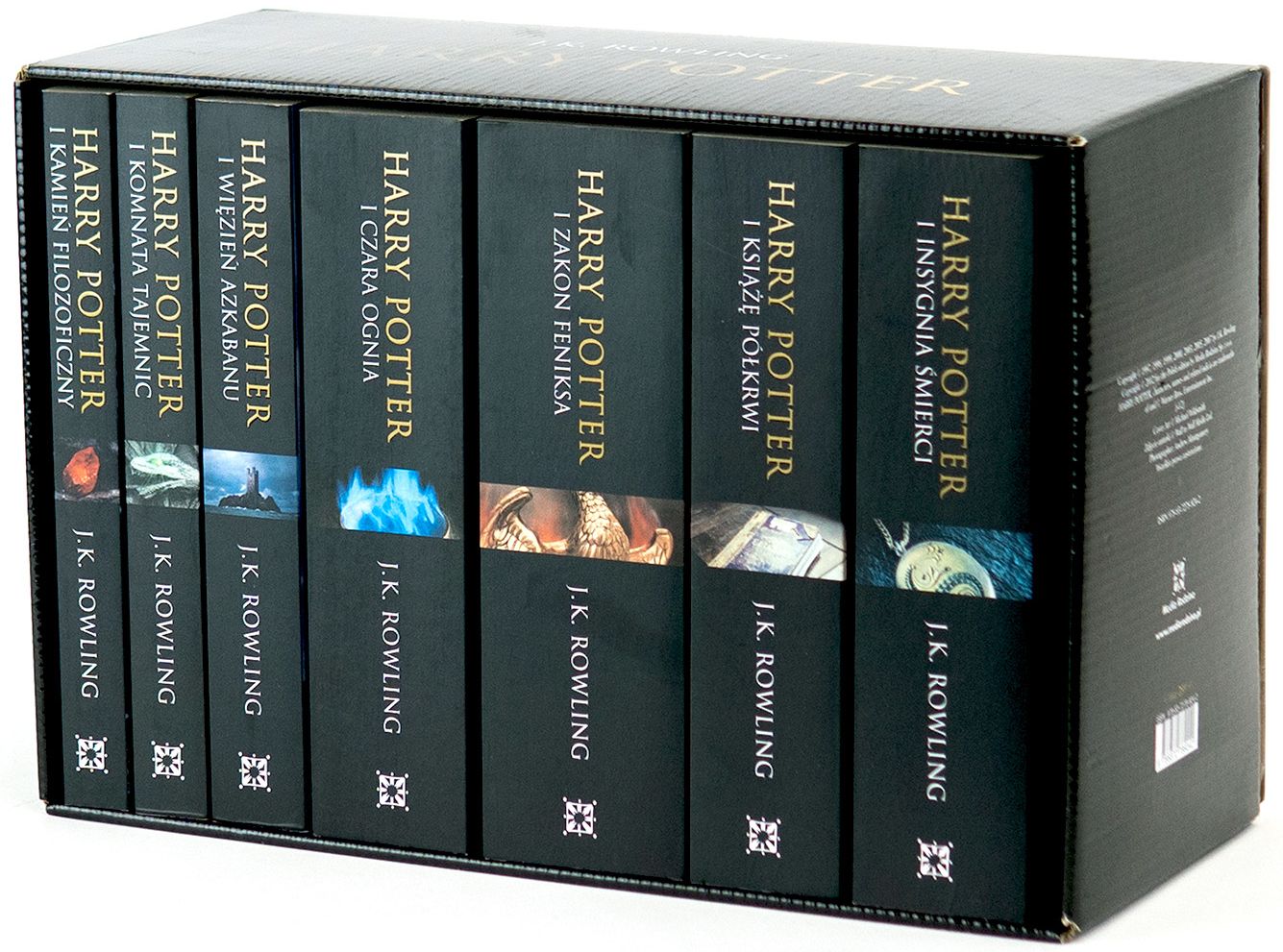 Harry Potter - siedmiopak, oprawa miękka- kompletny zestaw wszystkich tomów serii wszech czasów dla dzieci i młodzieży (a także dla dorosłych!). Wydanie w czarnych, fotograficznych okładkach.