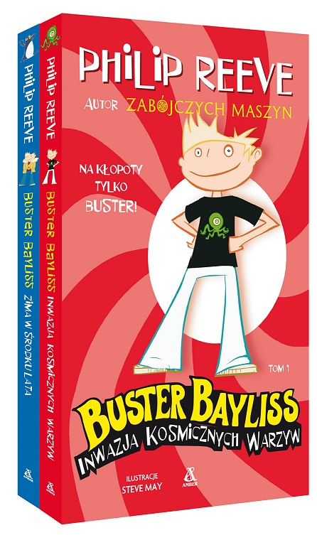Pakiet dwóch tomów zabawnych i magicznych przygód Bustera Baylissa autorstwa Philipa Reeve’a. „INWAZJA KOSMICZNYCH WARZYW” Kosmiczne warzywa atakują miasteczko! Przejmują kontrolę nad ludzkimi umysłami i zmieniają mieszkańców Smogley w niewolników. Rosną w zastraszającym tempie. Wkrótce zaczną zjadać ludzi. Buster musi znaleźć sposób, jak uratować miasto przed krwiożerczymi superbrukselkami… „ZIMA W ŚRODKU LATA” Buster nie ma szczęścia. Dlaczego zawsze coś (albo ktoś) musi mu zepsuć wakacje? Tym razem jest to ekipa archeologów, zaproszona przez mamę Bustera. Ale czy ktoś mógł przewidzieć, że ledwo rozkopią pagórek na szkolnym boisku… zamarzną w środku lata?! Buster ucieka w ostatniej chwili. Tylko po to, by odkryć, że to on musi uratować Smogley przed Królem Zimy, który skuwa miasto coraz grubszą warstwą lodu… PHILIP REEVE, brytyjski autor kilkunastu książek dla młodzieży i ilustrator. Światową sławę zyskał w 2001 roku dzięki powieści „Zabójcze maszyny”, zekranizowanej przez Petera Jacksona, reżysera m.in. „Władcy Pierścieni” i „Hobbita”. Książka zdobyła Złoty Medal prestiżowej nagrody Nestlé Smarties Book Prize. Philip Reeve został uhonorowany również innymi najwyższymi nagrodami gatunku: Carnegie Medal, Guardian Children’s Fiction Prize, Los Angeles Times Book Award.