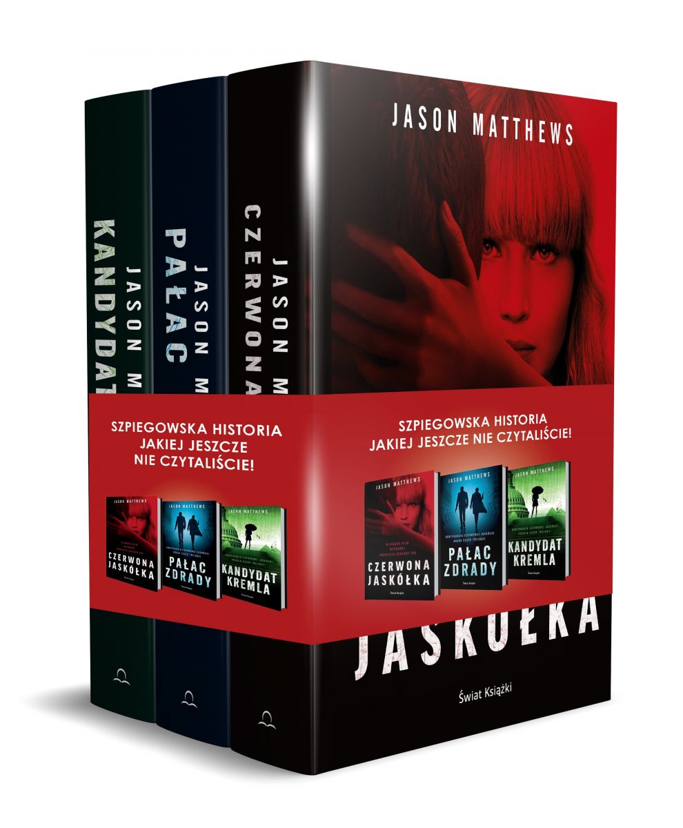 Czerwona jaskółka Powieść sensacyjna pióra byłego agenta CIA. Takiej historii szpiegowskiej jeszcze nie czytaliście! Rosja Putina. Piękne agentki wywiadu wbrew ich woli szkoli się do zadań specjalnych. Korzystając z technik miłosnych, wyniesionych z położonej pod Moskwą „szkoły jaskółek”, Dominika Jegorowa stara się przetrwać w dżungli, jaką współcześnie stał się rosyjski wywiad. Rosja, Finlandia, Grecja, Włochy czy Stany Zjednoczone – wszędzie będzie musiała toczyć walkę nie tylko z wrogiem, ale również z zakazanym, śmiertelnie niebezpiecznym uczuciem. Wyrafinowana gra, którą podejmie z Nathanielem Nashem, agentem CIA, przyprawi o ból głowy pracowników wywiadów od Moskwy po Waszyngton. Pałac zdrady Kontynuacja Czerwonej jaskółki, druga część trylogii. Kapitan Dominika Jegorowa, agentka rosyjskiej SWR, wraca do moskiewskiej centrali, gdzie zostaje podwładną psychopatycznego sadysty Aleksieja Ziuganowa, szefa kontrwywiadu SWR. Jest teraz podwójną agentką i wciąż zakochana w Nathanielu Nashu, swoim prowadzącym, pracuje dla Amerykanów. Na rozkaz prezydenta Putina jedzie do Wiednia, żeby zwerbować irańskiego naukowca, specjalistę od wzbogacania uranu (Irańczycy planują zakup posadzki antysejsmicznej do tajnego ośrodka badań nuklearnych). Dominika szantażuje go i pozyskuje. Zazdrosny o jej sukcesy Ziuganow nasyła na nią swoich zbirów. Kandydat Kremla Ostatnia część trylogii Czerwona jaskółka. Szefowa rosyjskiego kontrwywiadu Dominika Egorova i jej kochanek, agent CIA Nate Nash, muszą odnaleźć rosyjskiego agenta, który ma działać w strukturach rządowych USA. Powieść nie tylko kontynuuje dzieje Dominiki i Nate’a, ale też pokazuje mechanizmy, dzięki którym Rosjanie są w stanie umieścić szpiega w dowolnej strukturze rządowej. Powieść otwiera scena, w której rosyjski prezydent Vladimir Putin planuje skrytobójstwo wysokiego rangą urzędnika USA w celu zastąpienia go kretem, którego rosyjski wywiad szykował do tej pracy przez ponad 15 lat. Dominika, Nate oraz ich koledzy z CIA trafiają na ślad tej manipulacji i muszą zdemaskować zdrajcę, zanim on bądź ona ujawni, że Dominika latami szpiegowała na rzecz CIA.