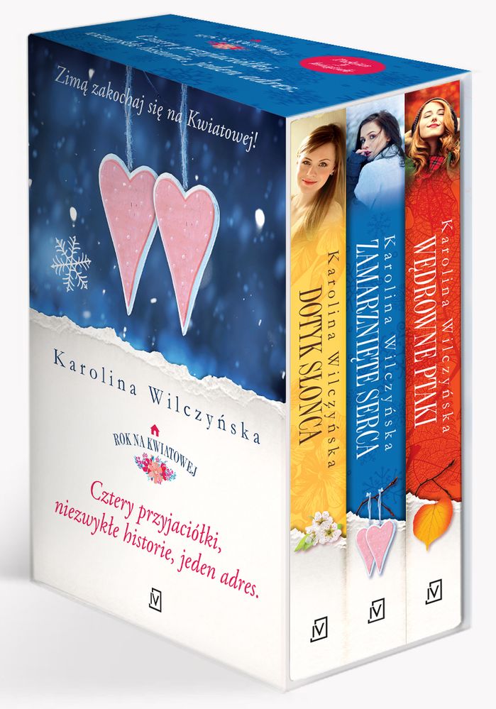 Pory roku przy ulicy Kwiatowej zmieniają się bardzo szybko. A to za sprawą czterech przyjaciółek: Malwiny, Liliany, Roży i Wioletty. Choć często stają w obliczu wyzwań, które stawia przed nimi życie, to razem są w stanie przezwyciężyć wszystko! Wędrowne ptaki, Zamarznięte serca i Dotyk słońca to powieści pełne kobiecych emocji. Zaprzyjaźnij się z ich bohaterkami i zostań dłużej na Kwiatowej!