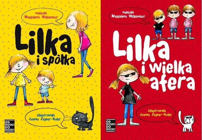 Lilka i spółka Wakacyjne przygody Lilki, czyli Mikołajka w spódnicy. Lilka, Wika i Matewka spędzają wakacje w Jastarni u ciotki Jadźki. A ciotka, jak to ciotka, oprócz pypcia na nosie ma swoje zasady:) - sprzątanie, sprzątanie, sprzątanie, a słodycze tylko w sobotę. Które dziecko to wytrzyma? Dzieciaki obmyślają sprytne plany, jak wyrwać się z Jastarni. Tym bardziej, że pogoda nie dopisuje, a do ciotki przyjeżdża „Pan Mądraliński”, czyli Wojtuś. Niestety wkrótce okaże się, że znienawidzona ciotka i przemądrzały Wojtuś, to najmniejszy problem Lilki i spółki… Lilka i wielka afera Druga część niesamowitych i zabawnych przygód Lilki . Czy tym razem wymarzone wakacje nad jeziorem u ciotki Franki będą beztroskie? Wszystko wskazuje na to, że tak… dopóki nie pojawią siętajemniczy poważnipanowie w garniturach i równie podejrzany Johnny...
