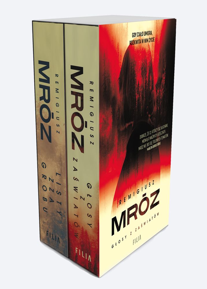 Największe tajemnice drzemią w małych miasteczkach. Bestsellerowa seria o patomorfologu, Sewerynie Zaorskim. LISTY ZZA GROBU: Dwadzieścia lat po śmierci ojca Kaja Burzyńska wciąż otrzymuje od niego wiadomości. Zadbał o to, przygotowując je zawczasu i zlecając coroczną wysyłkę tego samego, pozornie przypadkowego dnia. Po czasie Kaja traktuje to już jedynie jako zwyczajną tradycję – aż do momentu, gdy w listach zaczyna dostrzegać drugie dno… Tymczasem do miasteczka po dwudziestu dwóch latach wraca Seweryn Zaorski. Patomorfolog i samotny ojciec dwójki dzieci kupuje zrujnowany dom rodzinny Kai i rozpoczyna remont. W zniszczonym garażu odnajduje zamurowaną skrytkę z materiałami, które rzucają nowe światło na sprawę sprzed dwóch dekad… GŁOSY Z ZAŚWIATÓW: GŁOSY Z ZAŚWIATÓW to książka o ważnych i aktualnych tematach społecznych. Remigiusz Mróz w mistrzowskiej formie! Tomasz Sekielski Dobrze, że ci, którzy są słuchani, mówią o ważnych rzeczach. Mróz nie boi się trudnych tematów. Marcin Dorociński Seweryn Zaorski stara się na nowo ułożyć sobie życie, kiedy do zakładu patomorfologii w Żeromicach zaczynają trafiać ciała małych dzieci z okolicy. Nikt nie potrafi rozwiązać zagadki śmierci młodych ofiar, nic bowiem nie wskazuje na to, by zostały zamordowane. Seweryn jest jednak przekonany, że może stać się głosem tych, którzy mówią już jedynie z zaświatów. Kto i dlaczego zabija niewinne dzieci? I jaki związek ma to z tajemniczymi wiadomościami, które Zaorski zaczyna otrzymywać? Tymczasem Kaja Burzyńska musi zmierzyć się nie tylko z komplikującym się życiem rodzinnym, ale także z upiornym wołaniem tych, których ma na sumieniu. I tych, którzy domagają się sprawiedliwości…