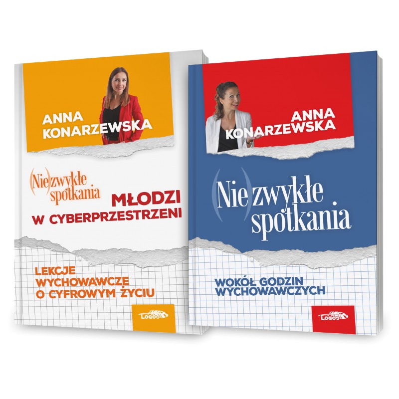 Pakiet książek Anny Konarzewskiej, zawiera dwie pozycje:"(Nie)zwykłe spotkania wokół godzin wychowawczych" oraz "(Nie)zwykłe spotkania młodzi w cyberprzestrzeni"