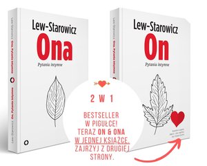 On Pytania intymne Mężczyzna w całej erotycznej okazałości. Ta książka to przewodnik po męskiej seksualności. Co takiego jest w seksie oralnym, że mężczyzna dla tej pieszczoty jest gotów zdradzić? Jaka jest różnica między podnieceniem a pożądaniem i jak to sprawdzić? Czym różni się męski orgazm od kobiecego? Czy penis to jedyne miejsce erogenne? A co z „przyległościami”? Jak je pieścić? Gdzie znajduje się męski punkt G? Kiedy niepełna erekcja to powód do niepokoju? Jakie są najbardziej szkodliwe mity dotyczące wielkości i kształtu penisa? Kiedy wziąć viagrę, a kiedy i tak nie pomoże? Na czym polega technika przedłużonego stosunku? W jaki sposób kobieta może sprawić partnerowi największą rozkosz? Ona Pytania intymne Jak na sto procent wykorzystać kobiecą seksualność? Ta książka to kontynuacja poprzedniej – „On. Pytania intymne”. Tym razem zajmujemy się mapą erogenną kobiety, tajemnicami waginy, sposobami osiągnięcia wielokrotnych orgazmów, technikami pomagającymi osiągnąć maksymalną rozkosz. Dla pań to niezbędnik samoświadomości seksualnej, dla panów podpowiedź, jak uszczęśliwić w łóżku partnerkę.