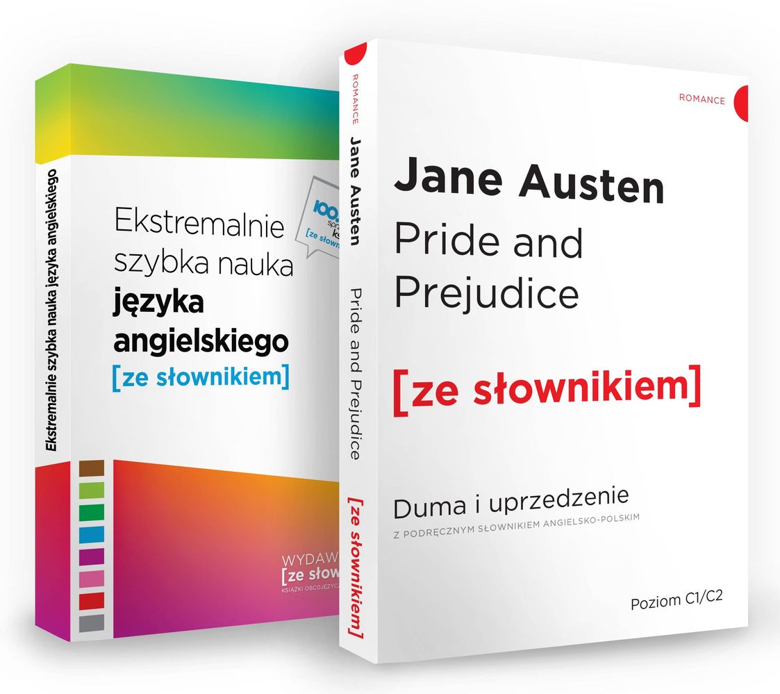 Zestaw publikacji Wydawnictwa [ze słownikiem] zawierający Pride and Prejudice z podręcznym słownikiem angielsko-polskim i Ekstremalnie szybka nauka języka angielskiego