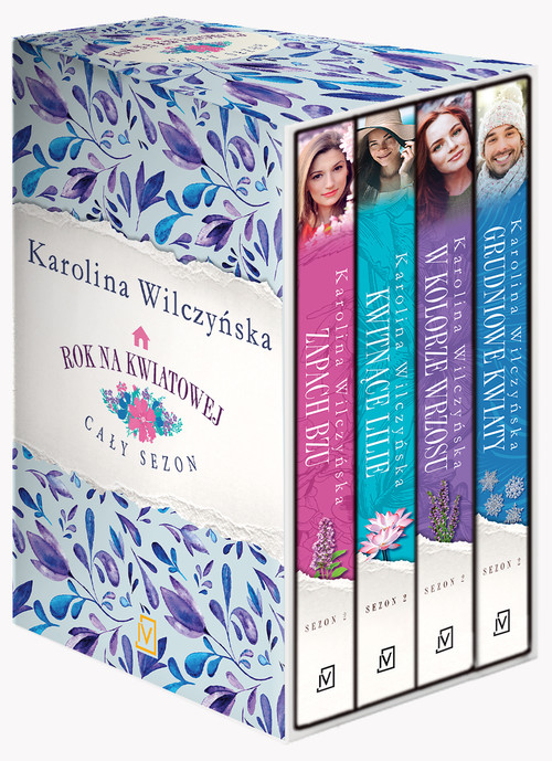 „Rok na Kwiatowej” to pełna emocji seria książek dla współczesnych kobiet. Poznaj czworo sąsiadów, ich codzienne sukcesy, życiowe problemy i prawdziwe emocje. „Zapach bzu” Julia jest młodą i sympatyczną studentką, lecz niestety nie ma zbyt wielu przyjaciół, bo nie czuje się pewnie wśród ludzi. Brak jej przebojowości – również w relacjach z rodzicami, którzy są wobec niej zanadto wymagający i nadopiekuńczy. Czy Julia znajdzie w sobie dość sił i odwagi, by choć raz postawić na swoim? I czy spotka wreszcie kogoś, komu będzie mogła zwierzyć się ze skrzętnie skrywanego przed światem smutku? „Kwitnące lilie” Kaja musi stawić czoła problemom ze zdrowiem, a obawa o przyszłość skłoni ją do zmierzenia się z przeszłością, od której chciała uciec. Czy uda jej się wybaczyć? I kim jest mała dziewczynka, którą Kaja spotyka na szpitalnych korytarzach? „W kolorze wrzosu” Danuta jest ambitną panią adwokat, która nieustannie musi udowadniać w pracy swoją wartość. Właściciel konkurencyjnej kancelarii nie przebiera w środkach i stara się jej zaszkodzić. Na szczęście kobietę postanawia wesprzeć sąsiadka, Liliana. Czy wspólnymi siłami uda im się pokonać bezwzględnego prawnika? „Grudniowe kwiaty” W życiu Norberta wszystko zaczyna się układać. Jego firma prężnie się rozwija, więc wraz ze wspólnikiem wynajmuje nowy lokal i przyjmuje coraz więcej zleceń. Zbliżające się święta to doskonała okazja, by naprawić relacje z bliską przyjaciółką. Jednak Norbert nie obawia się wyłącznie tego, czy Julia mu wybaczy. Chce jej zdradzić jeszcze pewien sekret, ale nie wie, jak dziewczyna zareaguje.