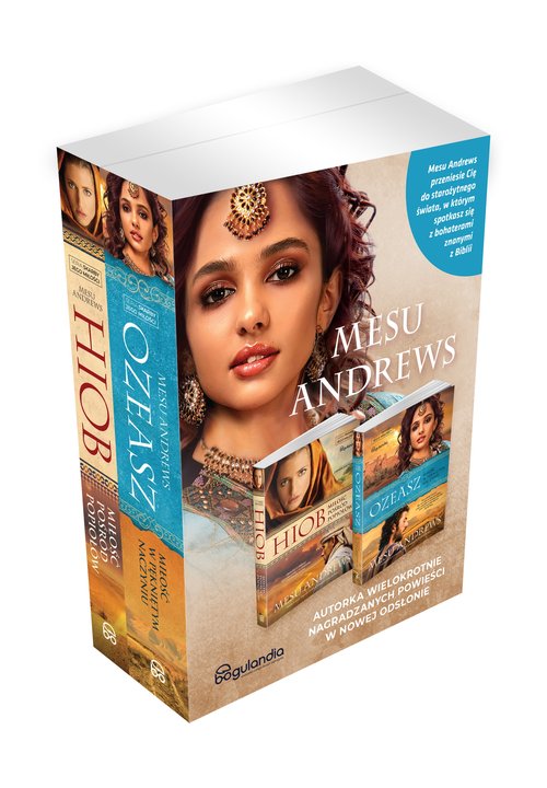Skarby Jego miłości PAKIET tom 1-2 - Hiob i Ozeasz "Hiob Miłość pośród popiołów". Powieść biblijna z serii "Skarby Jego miłości". Dina położyła palec pod brodą Hioba i obróciła jego głowę ku sobie. - Pamiętaj swe własne słowa, przyjacielu. – Jej głos drżał. – Nagi wyszedłem z łona matki i nagi tam wrócę. Dał Pan i zabrał Pan. Niech będzie błogosławione imię Pańskie. Tamtej nocy cierpiałeś z powodu tragedii, lecz twoje łzy były aktem poddania. Spojrzała mu głęboko w oczy. - Wierzę, że gdy powierzamy Jahwe nasze łzy, składamy Mu największą z ofiar. Hiob dał upust wstrzymywanym potokom łez. (frag. powieści) Po śmierci ukochanego dziadka Izaaka, Dina musi wypełnić ostatnie życzenie zmarłego - wyruszyć do miasta Us i poślubić syna Hioba. Tymczasem Hioba dotykają niewyobrażalne nieszczęścia – stracił zdrowie, najbliższych, cały dorobek swojego życia; Dina jednak nie opuszcza go. Jak wyglądało życie Hioba przed tragedią? Co myślał, gdy jego świat walił się wokół niego? A jak wyglądało życie po tym, gdy Bóg przywrócił mu bogactwo, zdrowie i rodzinę? Opowieść o miłości i przebaczeniu – o cierpieniu i wytrwałej wierze. "Ozeasz. Miłość w pękniętym naczyniu". Powieść biblijna z serii "Skarby Jego miłości". Pan rzekł do Ozeasza: Idź, weź sobie za żonę nierządnicę i miej z nią dzieci z nierządu, gdyż kraj przez nierząd stale odwraca się od Pana. Ozeasz otrzymał od Boga trudne zadanie - ma poślubić prostytutkę, aby pokazać ludziom naturę i głębię. Jego miłości do Izraela... Ozeasz przyjmuje misję, lecz wkrótce odkrywa, że kobieta, którą Bóg przeznaczył mu na zonę, jest Gomer - jego przyjaciółka z dzieciństwa. Zhańbiona i ciężko doświadczona przez życie, nie chce zaufać Ozeaszowi ani jego Bogu, ale poślubienie przyjaciela staje się dla niej jedyną drogą ucieczki. Gomer jak zawsze, wybiera ścieżkę przetrwania ale też ... zdrady. Dzięki połączeniu wiedzy historycznej i mistrzowskiego pióra, Mesu Andrews ożywia jedną z najbardziej fascynujących biblijnych historii o miłości i przetrwaniu w obliczu całkowitej zdrady. Mesu Andrews - tworzy własną, pełną uczuć i zamętów, wersję opowieści o Hiobie. Łącząc historię bohatera z członkami plemienia braci Ezawa i Jakuba, autorka budzi do życia tę znaną biblijną historię o cierpieniu i wytrwałej wierze, wzbogacając ją o romans. MESU ANDREWS Zdobywczyni nagrody Christy, ECPA. Inne tytuły serii "Królowie i Prorocy": - "Dziedzictwo Izajasza" - "Córka Izajasza" - "Ogień i lwy, Prorok Daniel i przyjaciele" Seria "Skarby Nilu": - "Miriam" - "Córka Faraona" Seria "Skarby Jego miłości" "Hiob. Miłość pośród popiołu" "Ozeasz, Miłość w peknietym naczyniu" "Salomon, Święta pieśń miłości" "W cieniu królowej Jezabel" "Żona Potyfara"