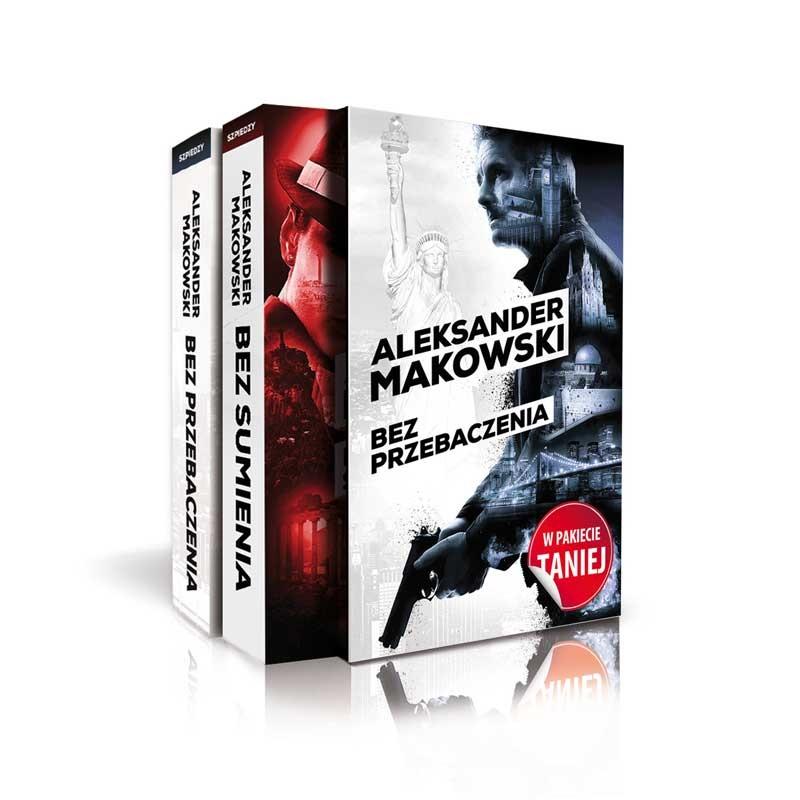 Poznaj kulisy działania światowych agencji wywiadowczych W skład pakietu wchodzą: "BEZ PRZEBACZENIA" Rozpędzona śmieciarka taranuje na nowojorskiej ulicy samochód. W płonącym aucie giną pasażerowie, kobieta i mężczyzna. Na pozór wypadek jakich wiele, ale jego ofiarą, Polakiem, interesują się nie tylko przedstawiciele najwyższych kręgów rządowych i agencji wywiadowczych, lecz także mafii, przygotowującej się do przerzutu ogromnych ilości narkotyków... Sprawa zatacza coraz szersze kręgi, a na jaw wychodzą coraz to nowe powiązania, sięgające w przeszłość, do czasów drugiej wojny światowej. Rozpoczyna się skomplikowana gra: przemytnik Dominik, były esesman Gerard, agent CIA Harry, polski pułkownik Szulc i związana z Mosadem Dolores – to tylko kilkoro z jej uczestników, których ścieżki splatają się i rozchodzą. "BEZ SUMIENIA" Kontynuacja przygód bohaterów pierwszej powieści Aleksandra Makowskiego Bez przebaczenia . Działający na całym świecie polski przemytnik Dominik nadal szuka odwetu na wpływowej amerykańskiej rodzinie Van Vertów, odpowiedzialnej za śmierć jego przyjaciela i ukochanej kobiety. Tymczasem Dolores, sympatyzująca z Dominikiem agentka Mosadu, oraz jej kochanek Malcolm Grey z wywiadu brytyjskiego odkrywają, że Van Vertowie stoją też za zamachem na prezydenta Kennedy’ego. Pojawia się nowa postać: agentka KGB Jekatierina Iwanowa, która – jak się okazuje – ma bardzo osobiste powody, by również dążyć do zemsty na rodzie Van Vertów, a co z tym idzie – podjąć współpracę z Dominikiem, Malcolmem i Dolores. Międzynarodowa grupa, którą połączył wspólny cel, rozpoczyna zakrojoną na dużą skalę akcję. Jej pierwszym etapem ma być „podstawienie” Martinowi Van Vertowi pięknej Brazylijki Marii. Tymczasem informator Dominika, Harry Adams, rozpoczyna pracę w Białym Domu, jednocześnie utrzymując bliski kontakt z Martinem. Van Vertowie, skupieni na wyborach prezydenckich, w których startuje ich faworyt Richard Nixon, nie dostrzegają, że z każdą chwilą są coraz ciaśniej osaczani...