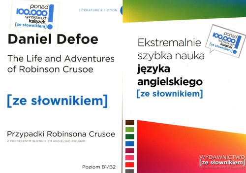 Przedstawiamy zestaw publikacji Wydawnictwa [ze słownikiem] zawierający The Life and Adventures of Robinson Crusoe z podręczny słownikiem i Ekstremalnie szybka nauka języka angielskiego. To świetna książka do szybkiej i przyjemnej nauki języka.To świetna książka do szybkiej i przyjemnej nauki języka.