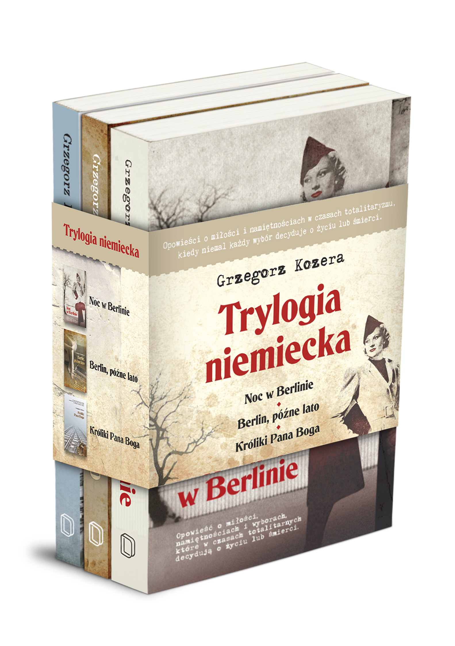 Noc w Berlinie Berlin, lata dwudzieste, lata trzydzieste. Joachim Werner to syn polskiej Żydówki zafascynowanej ideą rewolucji socjalistycznej i niemieckiego anarchisty. Już jako nastolatek sprzedaje swoje pierwsze obrazy i szybko zyskuje uznanie w środowisku artystycznym. O względy młodego malarza zabiegają marszandzi oraz kobiety zauroczone jego talentem, gotowe słono zapłacić za możliwość pozowania słynnemu artyście. Wkrótce do władzy dochodzą naziści. Berlin, stolica muzeów, teatrów, kina i kabaretu, z miesiąca na miesiąc przeobraża się w miasto brunatnych koszul. Wprowadzane są kolejne ograniczenia i zakazy, nasilają się represje. Bohater boleśnie przekonuje się, że w świecie opętanym szaleństwem ideologii nazistowskiej nie ma prawa być Niemcem… i nie ma prawa być artystą. Pewnego dnia na jego drodze staje piękna i tajemnicza skrzypaczka Milena Janska. W świecie terroru miłość zdaje się jedynym okruchem normalności. Aż do czasu nocy kryształowej… Berlin, późne lato Berlin, późne lato to historia o miłości teoretycznie niemożliwej, między dwojgiem ludzi, których dzieli wszystko. Opowieść o trudnych decyzjach i ich konsekwencjach, poświęceniu, zaufaniu i bezsilności jednostki wobec totalitaryzmu. Berlin, sierpień 1943 rok. Otto Peters, 45-letni wdowiec, którego syn zginął na froncie wschodnim, stara się wieść spokojne życie. Niegdyś był pisarzem, ale gdy naziści doszli do władzy, zamilkł. Pracuje w księgarni, mieszka samotnie, chce jedynie dotrwać do końca wojny. Jednak Trzecia Rzesza o nim nie zapomniała – otrzymuje propozycję pracy nad scenariuszem filmu, który ma służyć hitlerowskiej propagandzie. Wkrótce potem w jego życiu pojawia się Polka, poszukiwana przez gestapo uciekinierka z obozu koncentracyjnego. Peters, wbrew rozsądkowi, decyduje się pomóc Halinie… Króliki Pana Boga Poruszająca opowieść o przyjaźni, miłości, cierpieniu i potrzebie bliskości. Maj 1945. Adam, Halina i Honza – rozbitkowie, którzy ocaleli z wojennej hekatomby – próbują wrócić do Polski. Niemcy skapitulowały, lecz wojna tak naprawdę się nie skończyła, a świat poukładanych wartości dawno runął. Bohaterowie niejednokrotnie przekonają się o tym podczas swojej wędrówki.