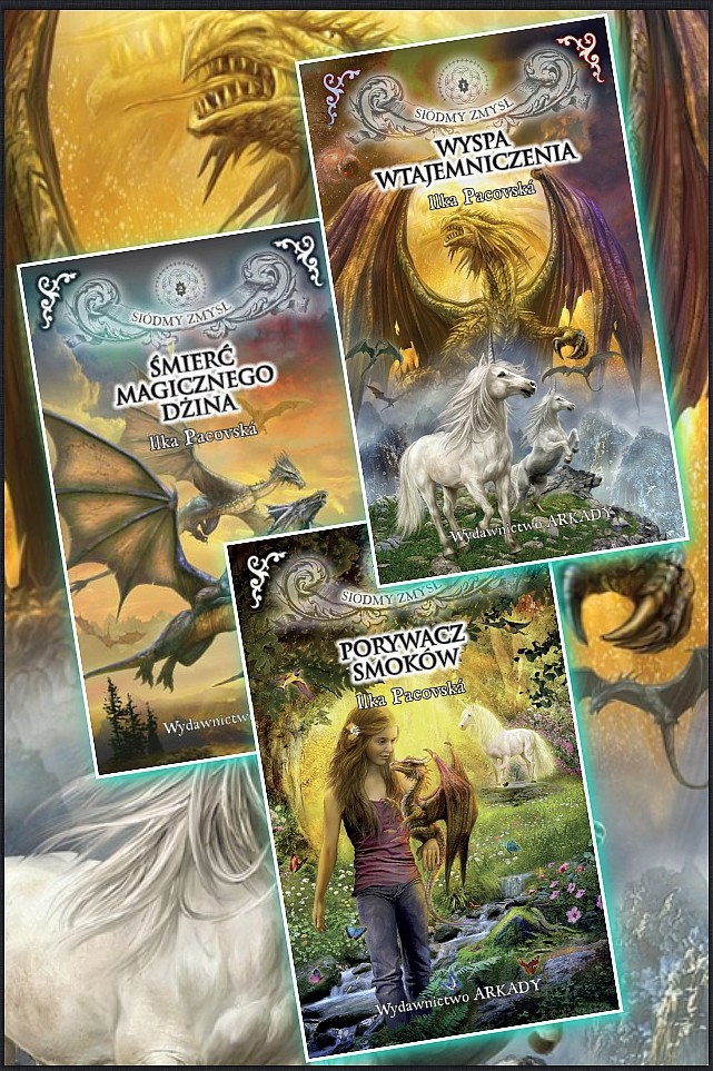 Trzymająca w napięciu zręcznie skonstruowana historia wprowadza czytelnika w niezwykły świat magii, opowiada także o zwykłych ludzkich radościach, zmartwieniach i problemach. Wielotomowa seria Siódmy zmysł to obowiązkowa lektura, która przez wiele lat cieszyła czytelników internetu. Tom 1 - Wyspa wtajemniczenia - 350 str. Tom 2 - Śmierć magicznego Dżina - 322 str. Tom 3 - Porywacz smoków - 328 str.