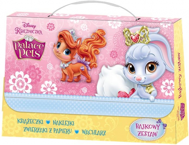 Palace Pets - Pałacowe pupile zapraszają do wspólnej zabawy. Zwierzaki najsłynniejszych Disneyowskich księżniczek wypełnią Twój wolny czas zabawą. W bajkowym zestawie znajdziesz książeczki z zadaniami i naklejkami, zwierzaki z papieru i wachlarz. Chwyć wachlarz i wyobraź sobie siebie w roli opiekunki jednego ze słodkich pupili, a potem baw się bez końca!