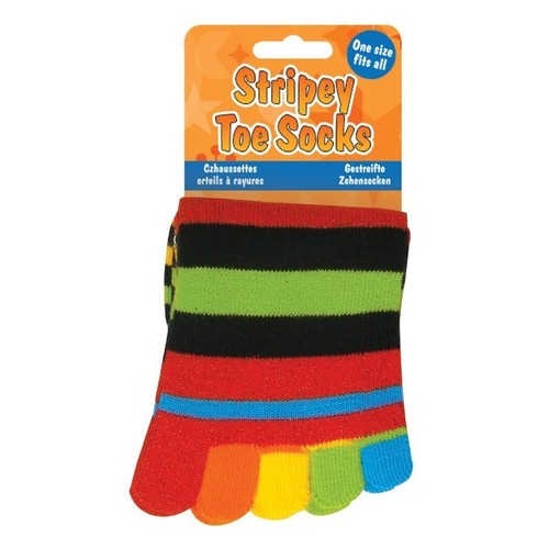 Uszyte z miękkiego, elastycznego materiału, Palczaste Skarpetki rozciągną się do rozmiarów każdej stopy. Skarpetki dostępne są w różnych zestawieniach kolorystycznych, ale w jednakowym, pasiastym wzorze. Cechy produktu: skarpetki z palcami uniwersalny rozmiar