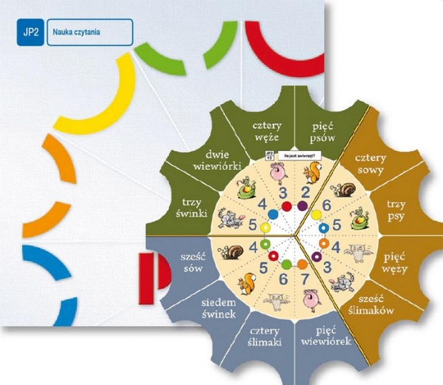 Zestaw zastosowanych ćwiczeń w tarczach JP 1 pozwoli dzieciom zaznajomić się z : • odczytywaniem wyrazów 1-sylabowych o złożonej budowie • uzupełnianiem wyrazów samogłoskami • tworzeniem z sylab wyrazów 2- i 3-sylabowych o złożonej budowie • uzupełnianiem wyrazów spółgłoskami miękkimi • kojarzeniem obrazków z wyrazami określającymi liczebniki i różne formy rzeczowników • wyodrębnianiem liter rozpoczynających nazwy obrazków • utrwalaniem pojęcia sylab i określaniem pozycji w wyrazie • uzupełnianiem wyrazów brakującymi samogłoskami • odczytywaniem wyrazów zawierających dwuznaki • odczytywaniem wyrazów 1- i 2- sylabowych • uzupełnianiem wyrazów brakującymi sylabami • tworzeniem wyrazów 2- i 3- sylabowych i ich łączeniem z właściwymi obrazkami • odczytywaniem wyrazów oznaczających nazwy czynności i łączenie ich z obrazkami • zabawy językowe - odszukiwanie wyrazów 1-sylabowych w wyrazach dłuższych