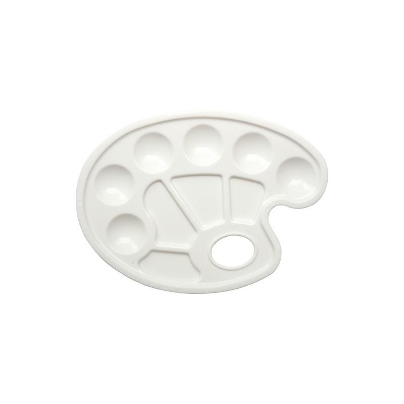Paleta malarska wykonana z tworzywa. Jest przeznaczona do farb wodorozcieńczalnych. Posiada dziesięć płytkich pojemników na farby oraz otwór do trzymania.