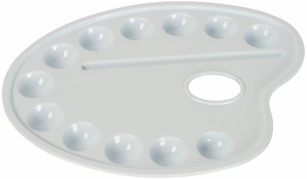 Plastikowa paleta malarska 19 x 15 cm, do namieszania 12 kolorów. 12 sztuk w opakowaniu zbiorczym.
