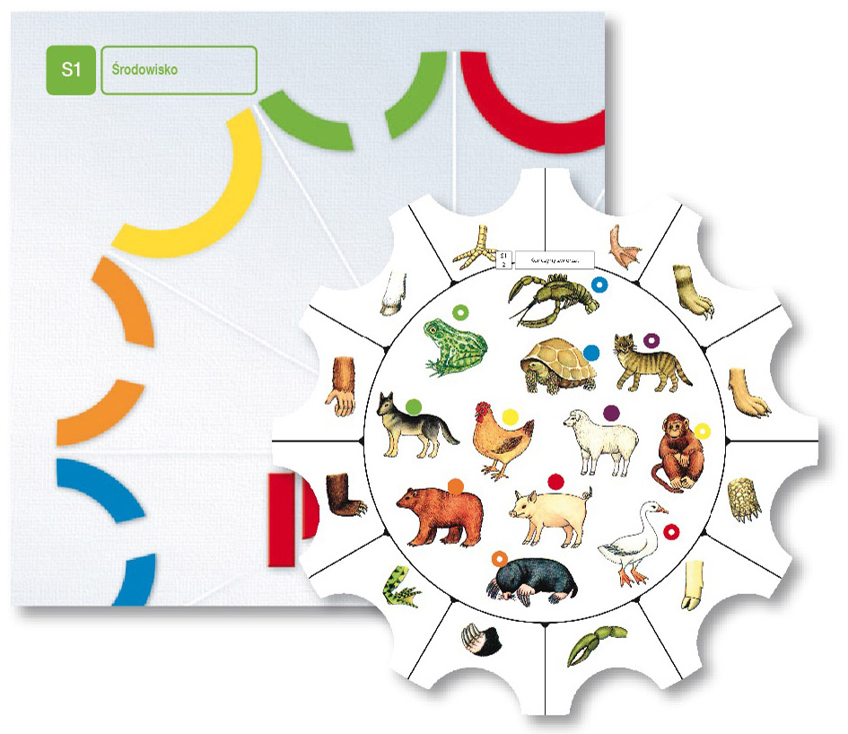 Tarcze ćwiczeń S1 to zbiór 12 tarcz ćwiczeń obejmujący swym zakresem zagadnienia dotyczące środowiska: * rozpoznawanie zwierząt i roślin, * wyróżnianie ich charakterystycznych cech, * przyporządkowanie miesięcy porom roku, * wiadomości dotyczące obiegu wody w przyrodzie, * warstwowa budowa lasu. Tarcze S1 przybliżają dzieciom zagadnienia ekologiczne: * ochrona wybranych gatunków roślin i zwierząt, * parki narodowe i obszary zagrożenia ekologicznego w Polsce. Oryginalne rozwiązania graficzne pomagają dzieciom samodzielnie znaleźć właściwą odpowiedź. Barwne ilustracje dostarczają dziecku właściwych wrażeń estetycznych, rozwijają wrażliwość i inspirują do własnych prób plastycznych.