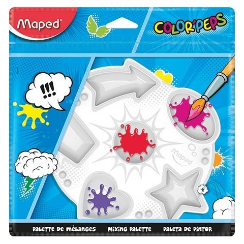 Paletka do farb SUPERPOWER w torebce zawieszkowej. 6 dużych wgłębień o różnych kształtach umożliwia łatwe mieszanie farb i tworzenie nowych odcieni i kolorów. 4 specjalne miejsca na pędzelki, wyprofilowane tak, aby zapobiegać ich staczaniu. Dzięki wyprofilowanej powierzchni można bezpiecznie odłożyć pędzelek, nawet jeśli jest umoczony w farbie. Po zakończeniu malowania paletkę można umyć pod bieżąca wodą.