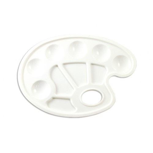 Niezbędne narzędzie w pracowni każdego artysty. Posiada 6 wgłębień na farby. Wygodny uchwyt. Kolor biały.