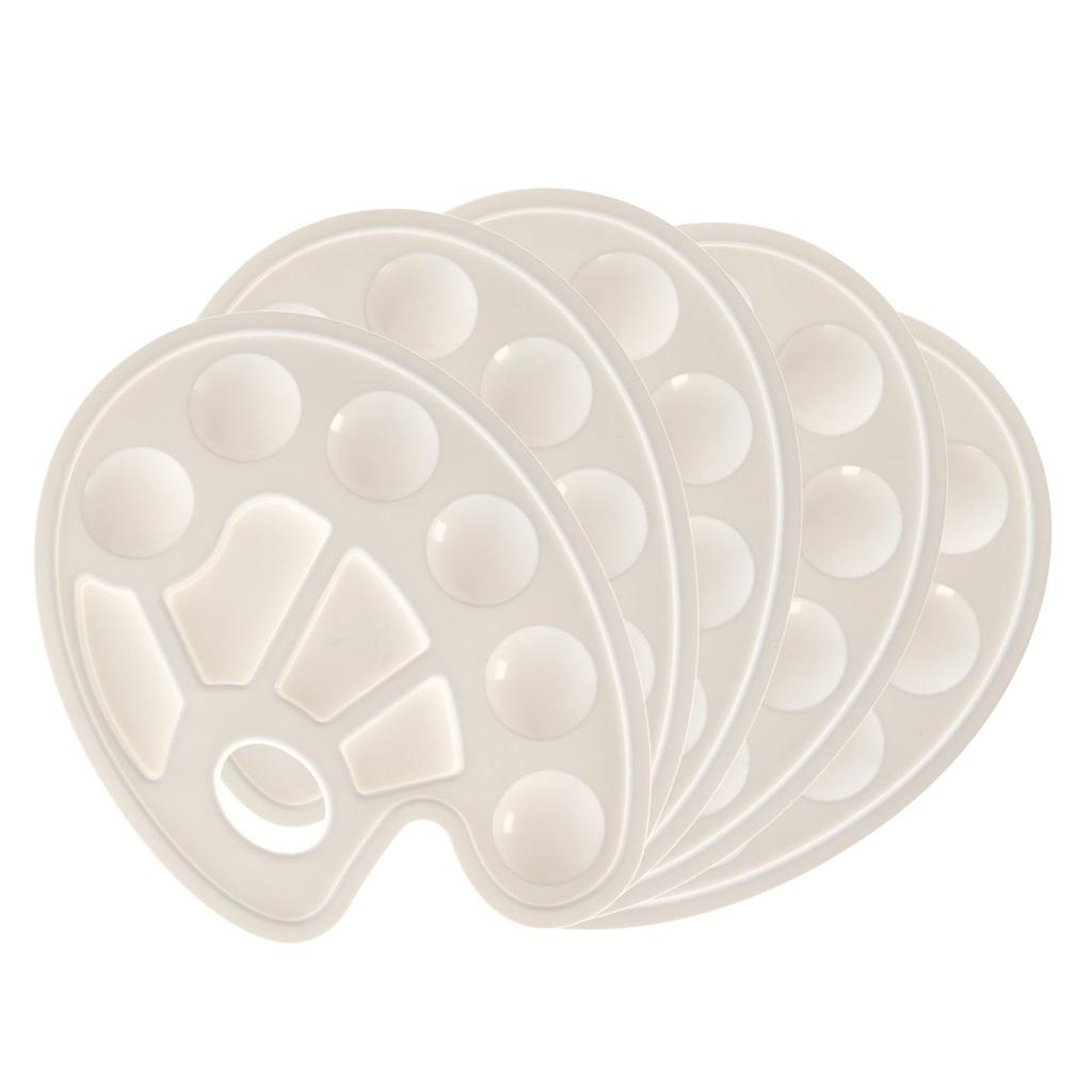 Paletka malarska w kolorze białym. Idealna do mieszania różnych kolorów farb. Posiada 10 wgłębień. Ergonomiczny kształt, gwarantuje wygodę podczas użytkowania. Łatwa w czyszczeniu. W zestawie 5 sztuk.